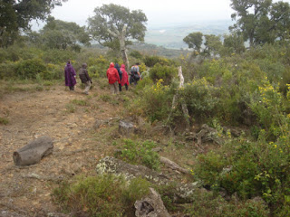 Entre Ubrique y Jimena de la Frontera el sendero internacional GR-7 discurre por algunas veredas que en otro tiempo utlilizaban los contrabandiatas que venían de la colonia inglesa de Gibraltar para adentarse en el interior de las sierras andaluzas. Por ello hoy a este tramo se le conoce como la "ruta de los contrabandistas". El pasado 31de marzo un grupo de 44 senderistas ubriqueños culminó esta etapa de unos 35 kilómetros. La expedición, organizada y guiada por los ruteros Juan Carlos Huércano y Juan Moreno Llucia, partió del Peñón del Berrueco, en el límite entre las provincias de Cádiz y Málaga, y considerado como uno de los puntos de entrada en el Parque de Los Alcornocales. La etapa había comenzado cuando todavía era noche cerrada, por lo que con las primeras luces, a la altura del puerto del Peruétano, los caminantes pudieron constatar que se encontraban inmersos en el reino de los alcornoques y quejigos. Tras encontranos con varios cruces, donde siempre hay que tomar el camino de la derecha, la pista forestal nos lleva a otra bifurcación, ahora señalizada, y que nos indica el camino de El Colmenar pero que debemos ignorar para continuar de frente en dirección al alto de La Carrera del Caballo. Superado este punto continuaremos por la pista forestal ascendiendo y llaneando un rato pero, a partir de ahora, en las intersecciones, debemos optar siempre por el sendero de la izquierda. Dejaremos atrás la casa de la venta Marín hasta que la pista se acaba y la ruta nos lleva por las veredas para internarnos en los canutos, sin duda la parte más interesante y atractiva del la etapa, donde los principales actores del paisaje son los bosques umbrosos, sobre todo de quejigos, las praderas de helechos, los cursos de agua, ahora secos, así como las abundantes zarzas. En el canuto de Los Lobos hay que efectuar una parada obligatoria delante de un improvisado santuario, con una imagen de la virgen en un hueco de una roca, colocada por uno de nuestros compañeros hace ya seis años, y por lo que algunos ya han querido rebautizar este lugar como el "canuto de la virgen". Después el paisaje se abre para llevarnos a un llano de helechos, acto para efectuar otra parada. A partir de entonces iniciaremos un descenso cada vez más pronunciado Se trata de una bajada muy técnica y no exenta de dificultades y desde donde el horizonte nos ofrece ya una primera imagen de Jimena recostada al pie de su castillo. El sendero nos lleva a través de la calzada de Las Asomadillas, aún más pendiente, hasta recuperar el asfalto de la carretera de Ubrique y que nos indica la entrada a Jimena. Allí comprobamos que la travesía se había cubierto en un tiempo muy por debajo del estimado. Se trataba, sin duda, de un grupo muy motivado por alcanzar la meta y obtener la justa recompensa al esfuerzo en el restaurante casa de Ana. Después de la comida, la marcha debía continuar hasta la estación de ferrocarril para tomar el tren en dirección a Cortes de la Frontera y desde alli hasta Ubrique en autobus. En resumidas cuentas, una jornada fantástica, de las que crean afición al senderismo, una camaradería impecable y una oportunidad única para disfrutar de la armonía y el equilibrio que sólo se experimenta cuando caminamos en plena naturaleza.
